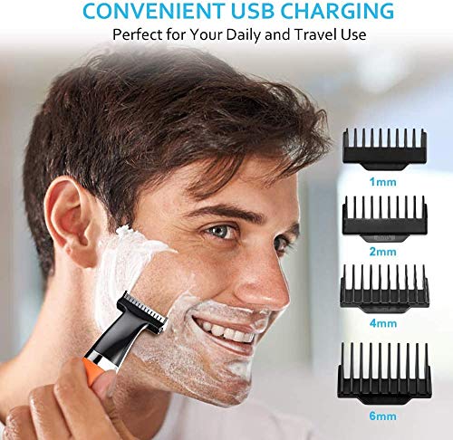 【Shave Any Length】Comes with 4 guide combs (1/2/4/6 mm), let you trim any length of hair easily on your face or beard