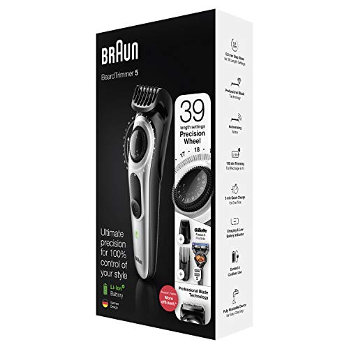 Achieve your style effortlessly with the Braun BT5265 beard trimmer & Hair clipper for men. The BT5265 features a precision dial with 39 length settings and comes with lifetime sharp blades and a mini foil shaver. Washable trimmer head and comb. Box includes: 1 x beard trimmer & Hair clipper 1 x precision beard Comb 1 x Gillette Fusion5 razor 1 x precision hair comb 1 x mini foil shaver 1 x smart plug charger 1 x cleaning brush user manual warranty