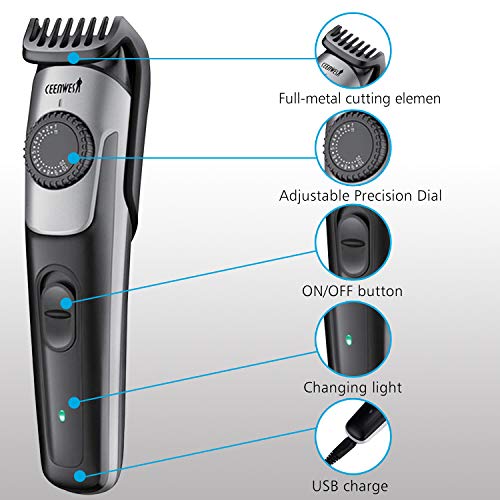 Ceenwes Beard Trimmer & Hair Clipper 38 Length Settings Lifetime Sharp Blades 2 Combs With Precision Dial USB Charging Fast Charge Long-Lasting Use
